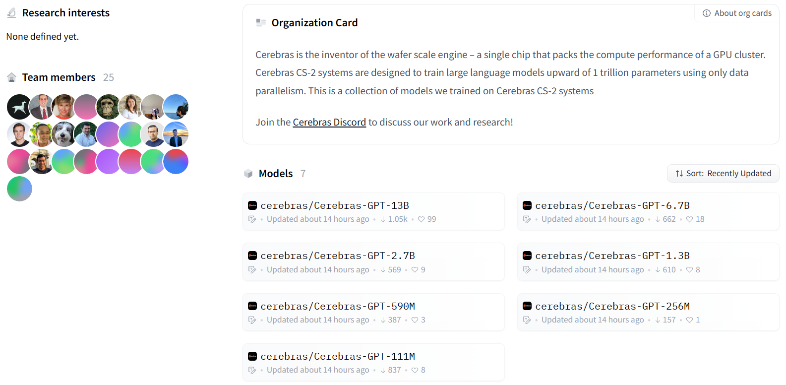 Cerebras released seven models, all trained on its Andromeda Artificial intelligence supercomputer, including smaller language models with 111 million parameters to a larger model with 13 billion parameters.